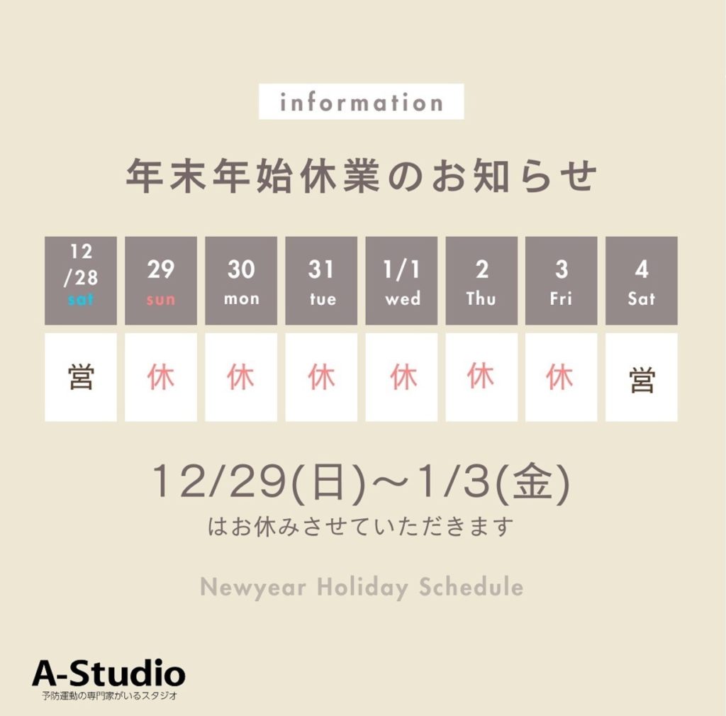 当スタジオの年末年始の営業についてご案内申し上げます。