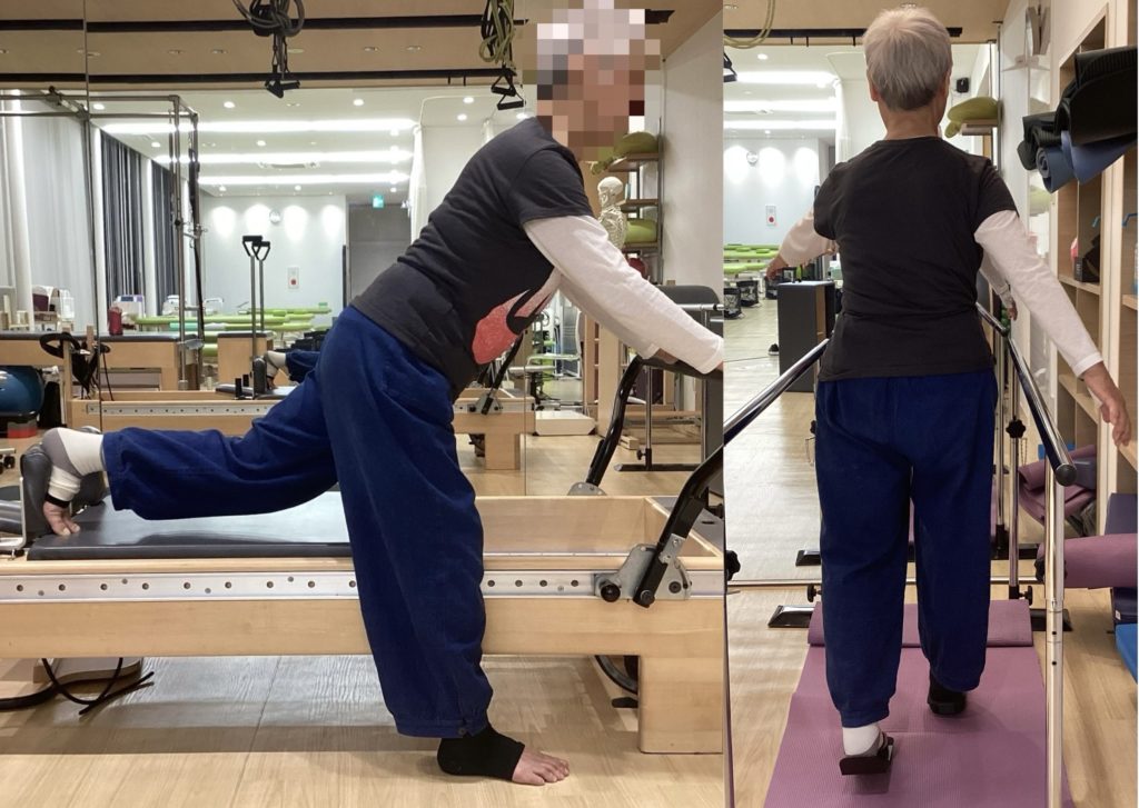 また、マシンピラティスを使用し、左右均等に体重をかける練習をしていきました。