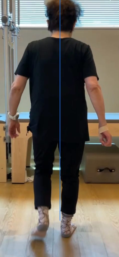 歩行では、腕の振りが少なく、足の蹴り出しも乏しくなっていました。