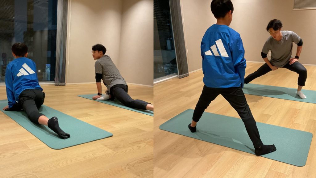 また、スポーツのパフォーマンスアップを目的に2週間に1回の頻度でトレーニング塾に参加しています。そこでは弱点である体幹や足首に対してのトレーニングを中心に行っています。