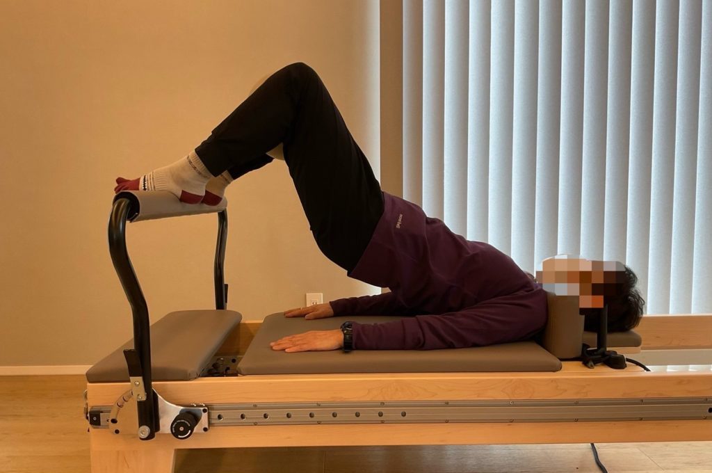 また、ピラティスを器具を使用して正しい姿勢で下肢の筋力強化を行っています。